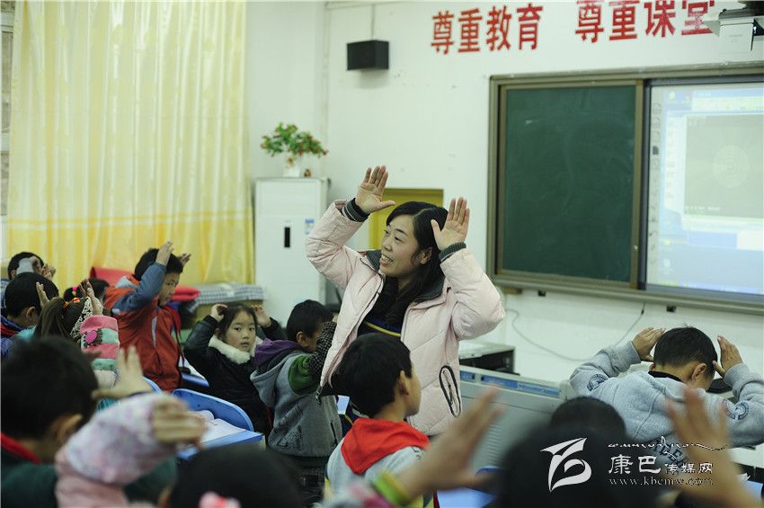 “同學(xué)們,我們?cè)賮?lái)練習(xí)一下好嗎?”孩子們齊刷刷地隨著音樂(lè)又唱又跳,《鵝》、《春眠》、《小雨沙沙地下》三首歌曲之后孩子們興致高漲、喜笑顏開(kāi),裴老師一個(gè)暫停手勢(shì),教室立刻安靜下來(lái),緊接著就是密集的移動(dòng)桌椅的聲音,30多張書桌很快又被排放得整整齊齊,整個(gè)過(guò)程老師沒(méi)說(shuō)一句話,這群六七歲的孩子卻仿佛久經(jīng)訓(xùn)練的士兵反應(yīng)迅速而有序。