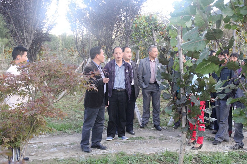 代敬濤和局領(lǐng)導(dǎo)查看苗木長(zhǎng)勢(shì)情況。