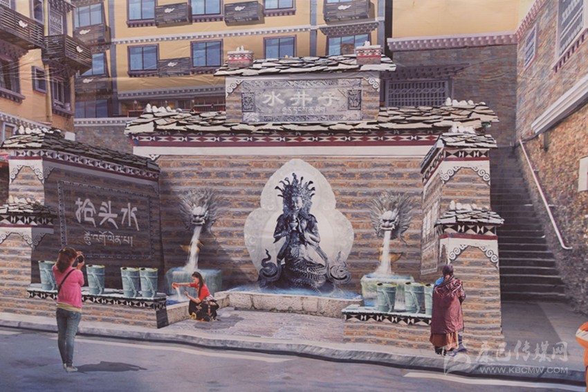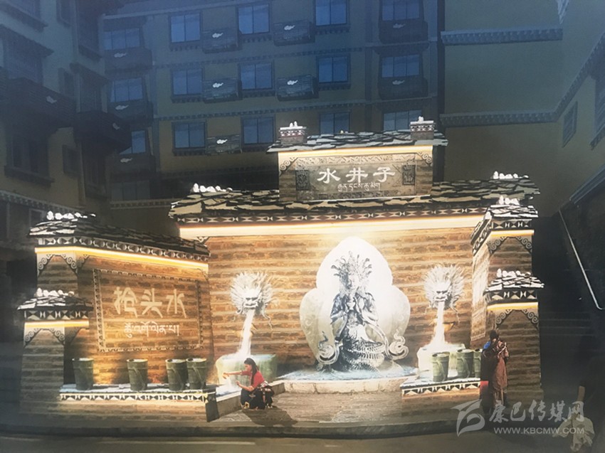 在現(xiàn)場,“水井子”原址已被圍擋封閉施工。根據(jù)設(shè)計,此次提升將融入“搶頭水”民族習(xí)俗,并結(jié)合互動性祈福、見證愛情的表現(xiàn)手法旨在將水井子打造成為康定城中的體驗式民俗景點。從外觀上看,內(nèi)街水井依然采用開放式外墻,正中神龕放置藏族水龍王塑像,兩邊塑造龍頭,以“二龍噴水”景觀作為新的出水方式,下方池邊則安放傳統(tǒng)背水姑娘雕塑。
