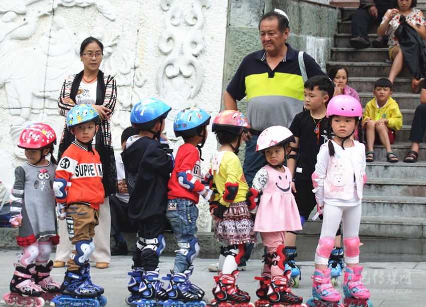 練習(xí)溜冰的小朋友。