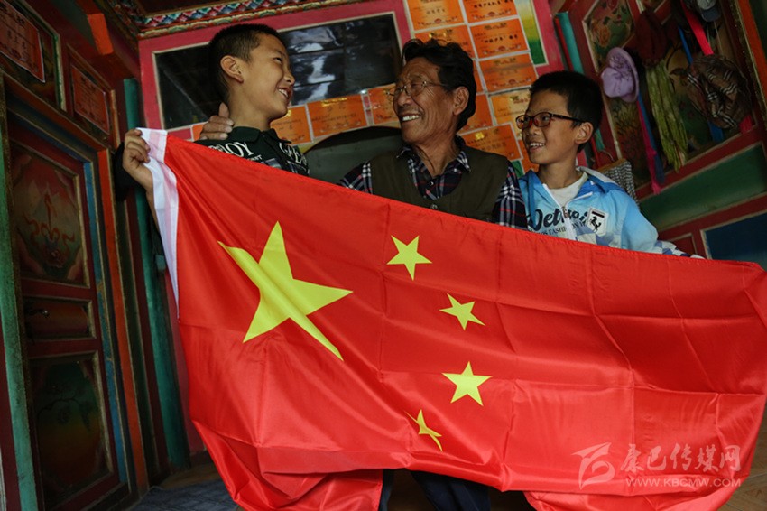 8月5日早晨7時(shí)50分,鬧鈴響起。巴塘縣蘇哇龍鄉(xiāng)絨岔絨村73歲的藏族老人翁修從臺(tái)柜上拿起疊得整整齊齊的國(guó)旗,登上樓頂,把國(guó)旗穿進(jìn)旗桿后,靜靜地等待著;8時(shí),老人揮舞國(guó)旗,高唱國(guó)歌:“起來,不愿做奴隸的人們……”