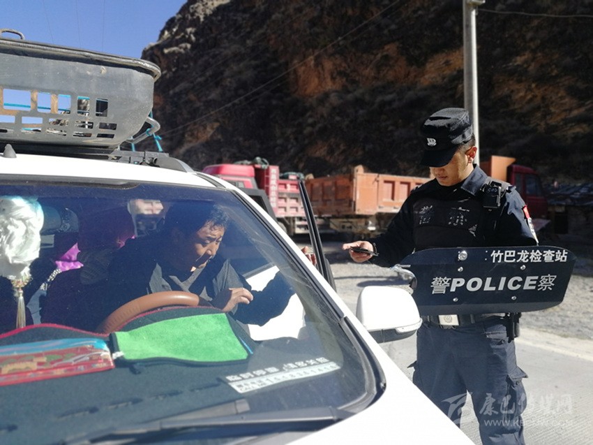 竹巴籠派出所(檢查站)民警對(duì)過(guò)往車輛例行檢查。