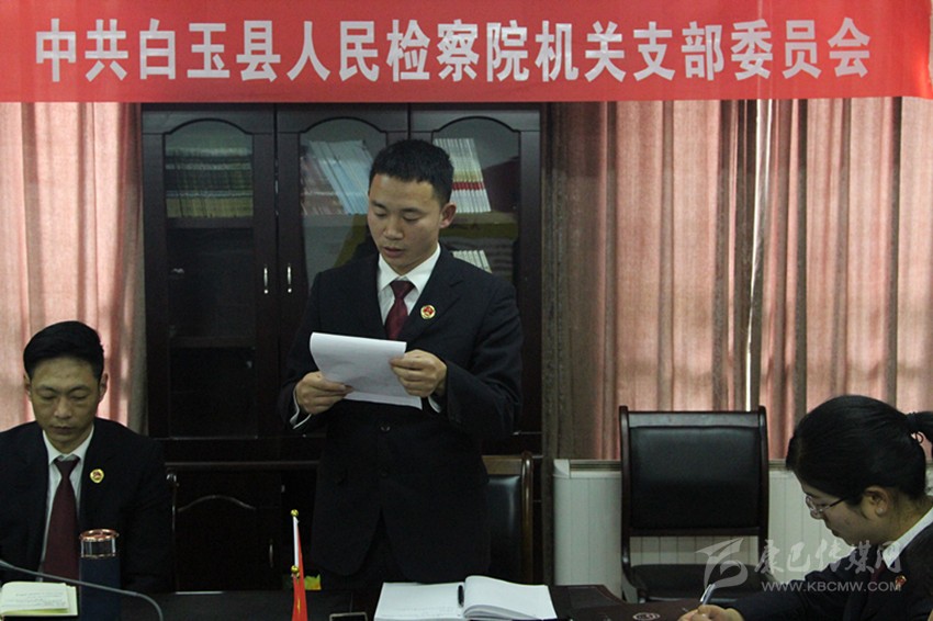 本網(wǎng)訊 近日,白玉縣人民檢察院黨支部召開接收預(yù)備黨員大會(huì),討論了關(guān)于吸收秦偉同志為中共預(yù)備黨員的事宜。會(huì)議由該院黨支部書記王洪勇同志主持,除2名黨員抽調(diào)外出,該支部12名黨員、1名發(fā)展對(duì)象參加此次會(huì)議,2名黨外干部列席。