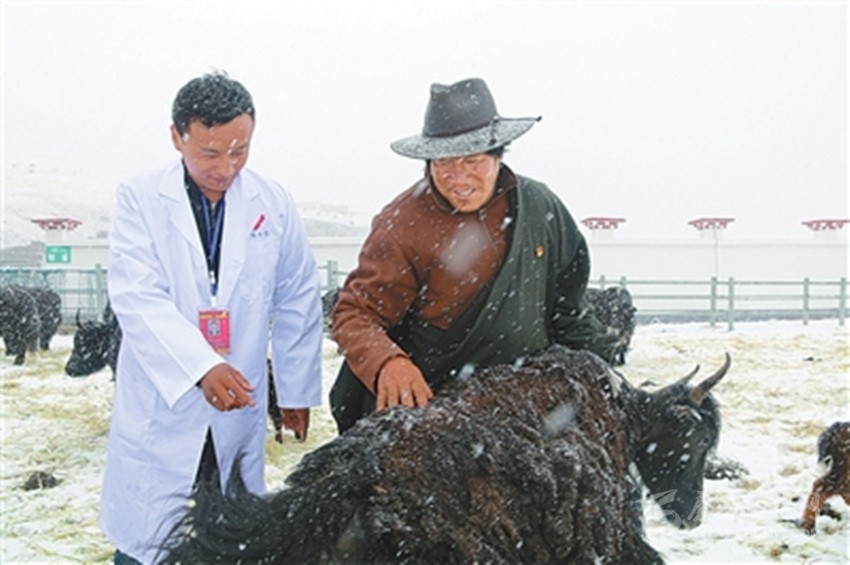 獸醫(yī)正在給牦牛看病。