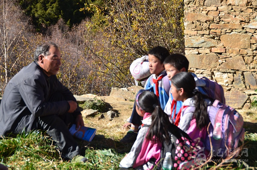 雖然代課教師的工資從當年的每月200元漲到了現(xiàn)在每月800元,然而在以市場經(jīng)濟為主體的社會里,800元工資的人群屬于低收入群體。盡管如此,阿布里老師依然早出晚歸,在那條他閉上眼都能走的小徑上來回奔波,依舊嘔心瀝血教書育人,那郎朗的讀書聲在藏寨的上空久久回蕩。每天上學放學路上,孩童們在阿布里老師的帶領(lǐng)下,在小徑上排著整齊的隊伍,撒下一路歌聲一路歡笑。