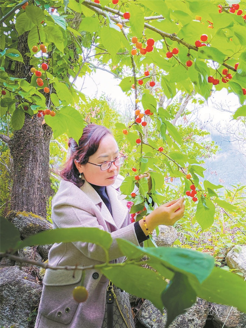 游客采摘紅櫻桃