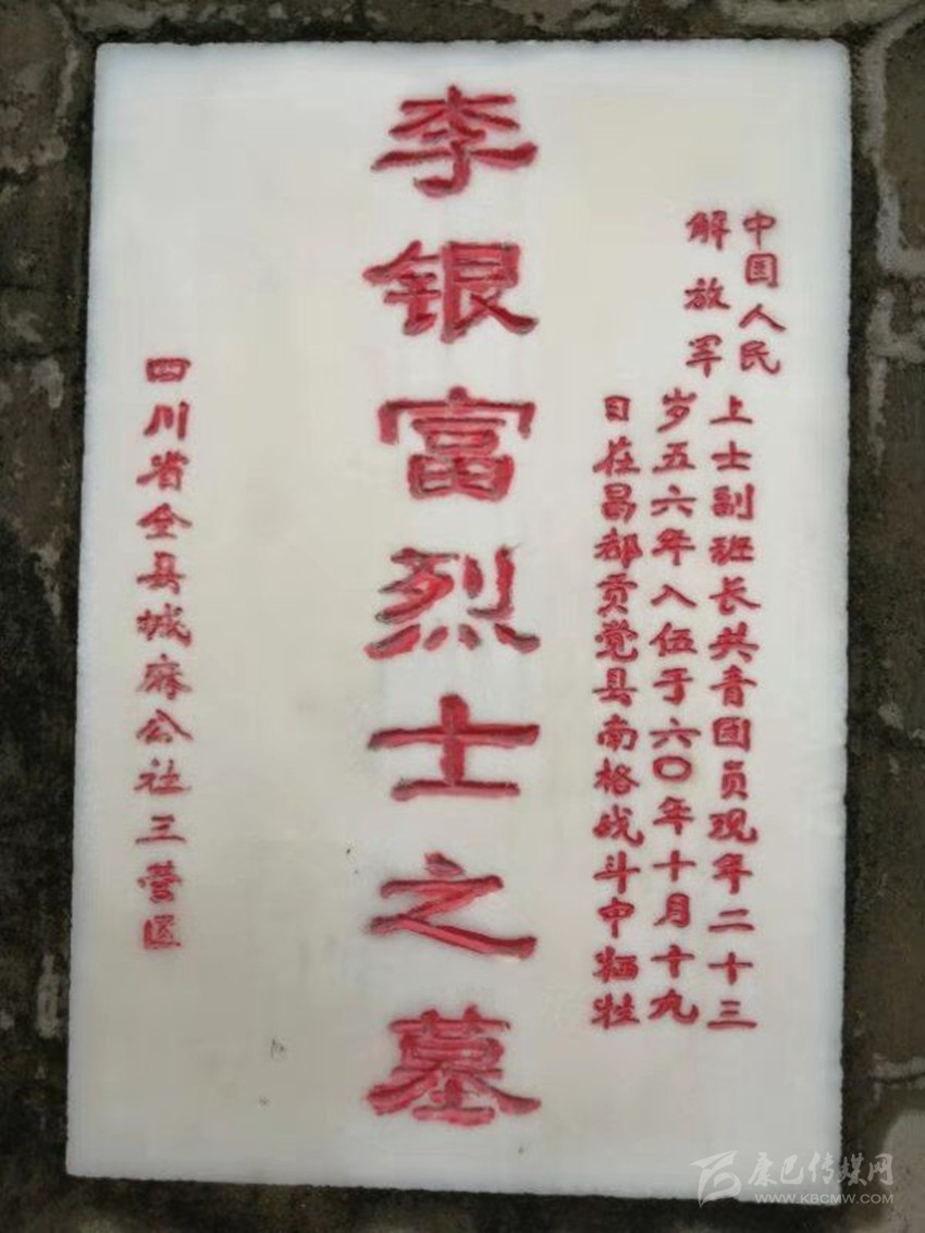1937年出生在雅安市天全縣的李銀富,在19歲那年加入中國人民解放軍,4年后在平叛戰(zhàn)斗中犧牲。撇下家中的寡母和兩個幼子,李銀富長眠在他曾戰(zhàn)斗過的雪域高原。