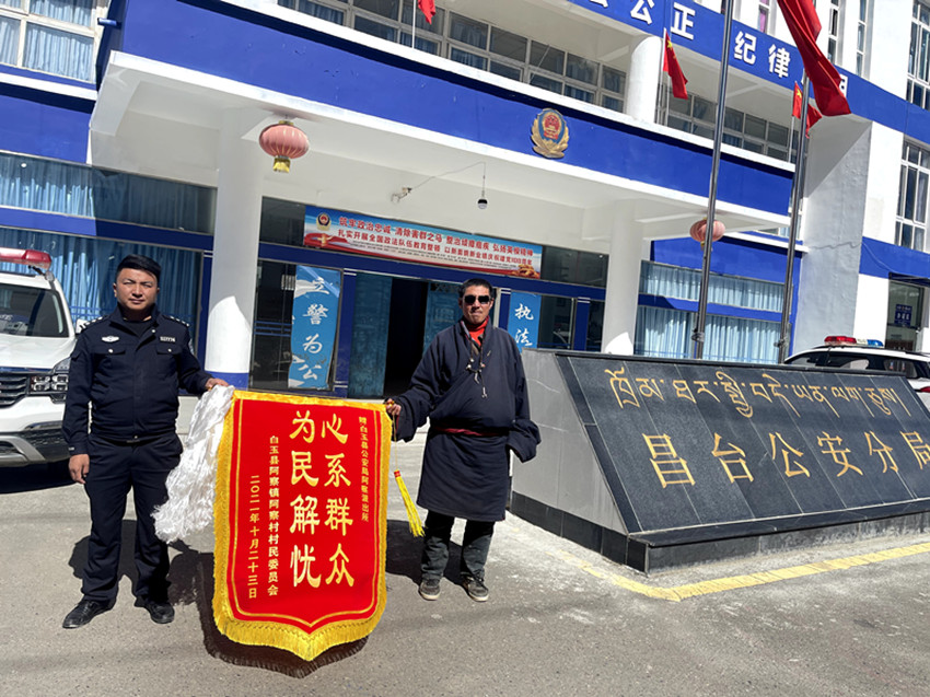 上門辦理身份證、調(diào)解群眾矛盾、幫群眾除雪、解救被困游客、幫牧民尋找丟失的牦?!幻婷驽\旗無聲地講述著根呷扎西帶領(lǐng)昌臺公安分局全體干警們,為群眾辦理的一件件“小事”。