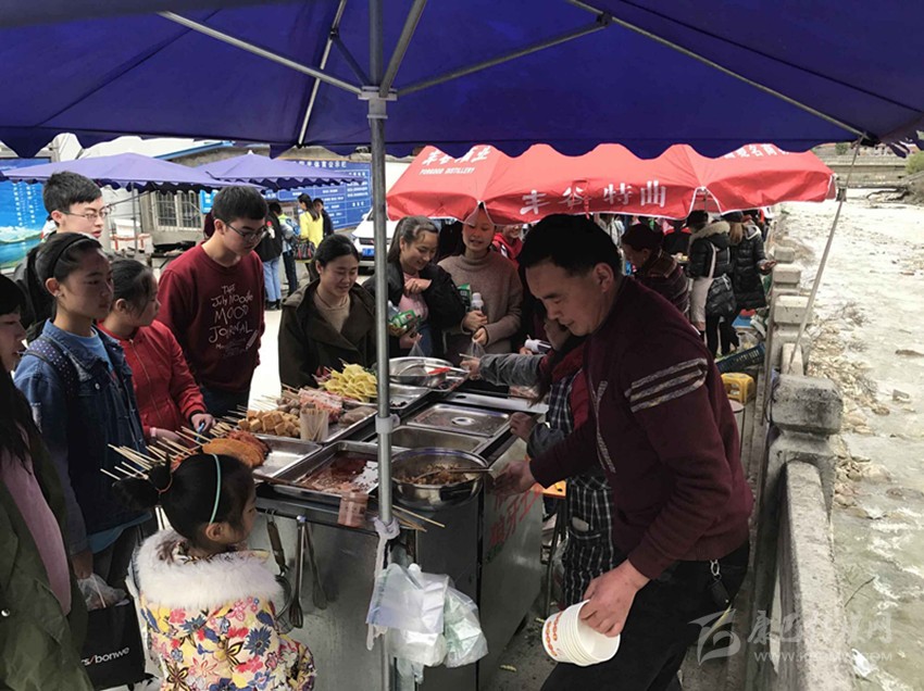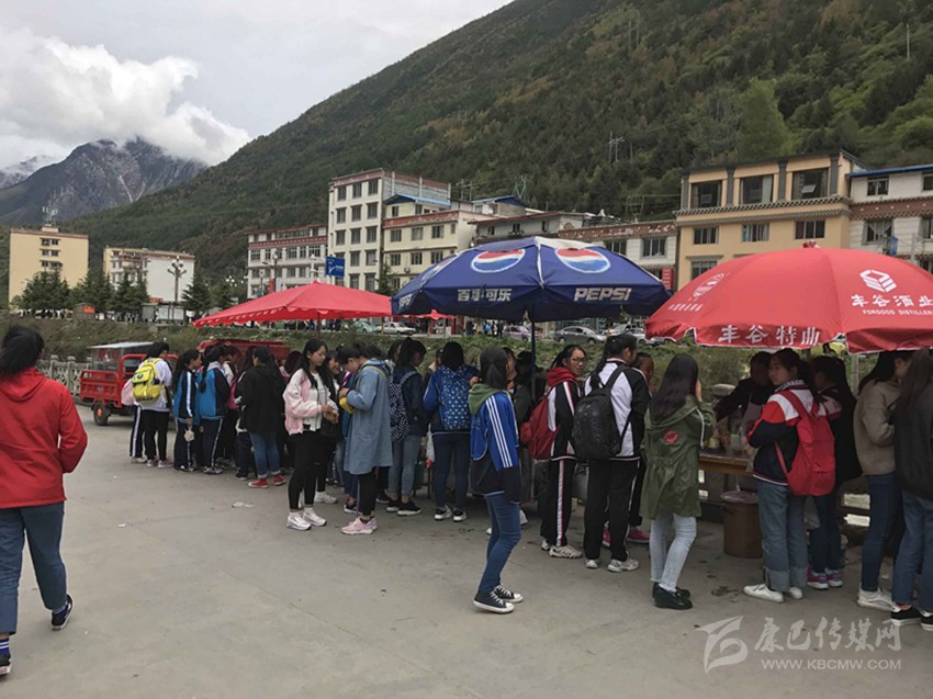 那么真實情況到底如何呢?7日,記者專門來到康定中學(xué)走訪調(diào)查。記者搭乘出租車前往學(xué)校,途中司機(jī)卻回應(yīng)“康中校門口那一段全是賣炸洋芋、炸雞腿的攤攤,車子根本開不過去,只能提前下車。”當(dāng)記者步行過橋到達(dá)校門口路段時,雜亂無序而又異常喧鬧的場面立刻映入眼簾。約摸十來家燒烤油炸“流動攤點”上,商販們手中的烤具上下翻飛,幾十名身著“康定中學(xué)”校服的學(xué)生駐足其間,從校門出入的車輛不斷鳴笛避讓??久娼睢⒄ㄍ炼?、烤雞腿,濃濃的油煙、各種調(diào)料混合的氣味、滋滋的油炸聲……儼然一副“美食街”的火爆景象。