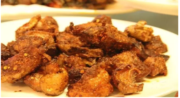 康南則用繩將豬勒死,讓血存于體內(nèi),然后用草點火去毛,于肛門處割一孔,取出內(nèi)臟,用干草或麥子等塞入豬腹內(nèi),用針縫合,縫口處用灶灰摻水攪合成糊密封,掛在室內(nèi),待其發(fā)酵,產(chǎn)生臭味時食用,稱“臭豬肉”。