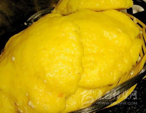 玉米饃是爐城平常人家常食的,就是許多做小生意開小攤鋪,常蒸食玉米饃。雅安人彭大春夫婦,早年曾在康定幫人干活,夫婦善做小吃。爐城大米昂貴,知爐城愛吃玉米,又愛吃“焦粑”(一種以面粉起酥肉餡炕餅的小吃)習(xí)慣,用金鉤鮮肉做餡,仿效“焦粑”的做法,用上等玉米面,創(chuàng)造出玉米面包金鉤炕餅,以其香、咸酥、脆味長(zhǎng)誘人,食者排隊(duì)購買,風(fēng)行一時(shí)。