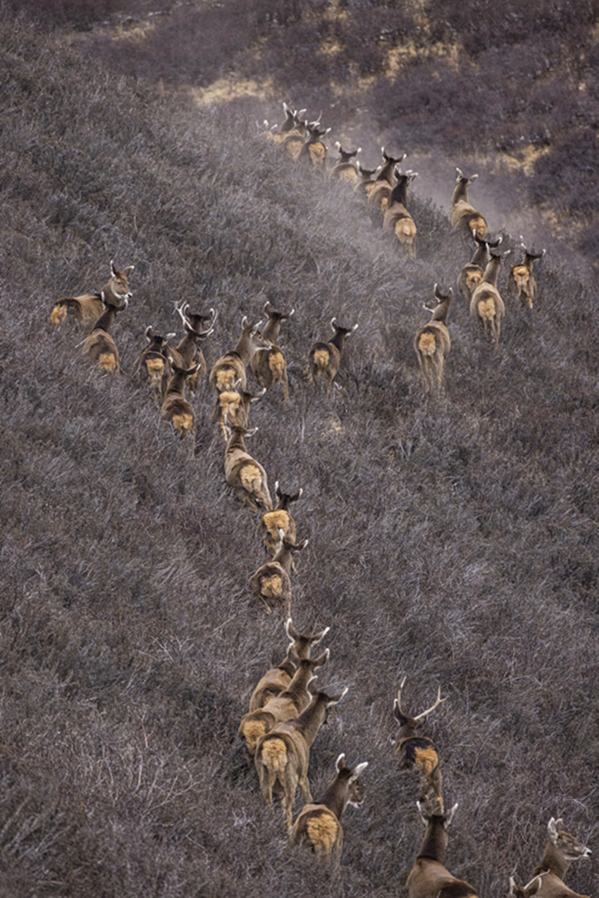 本網(wǎng)訊 3月4日,色達(dá)縣攝影協(xié)會(huì)網(wǎng)友拍攝到一支由上百只白唇鹿組成的“遷徙隊(duì)”現(xiàn)身色達(dá)縣洛若鎮(zhèn)塘亞溝。