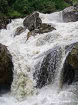 溝外交通與燕子溝大致相同,從南門關(guān)溝至兩河口14.5千米,在這里分做兩條路,一條往西南去牛園子和冰川,一條往西北去蟲草棚子(二號(hào)營(yíng)地)和冰川。這里沒(méi)有食宿,道路艱險(xiǎn),馬不能通行,需要當(dāng)?shù)叵驅(qū)А?/p>