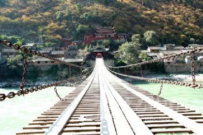 瀘定橋簡(jiǎn)介瀘定橋坐落在瀘定縣城大渡河上,為全國重點(diǎn)文物保護(hù)單位。該橋始建于清康熙44年,建成于45年(1706年)。康熙御筆題定“瀘定橋”,并立御碑于橋頭。